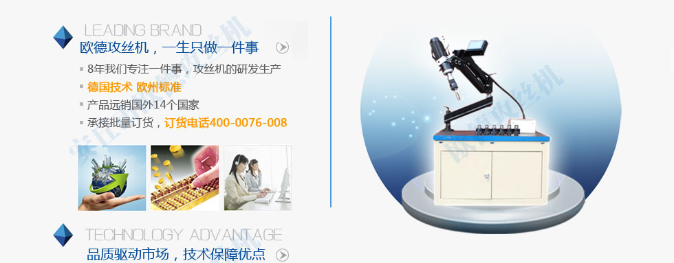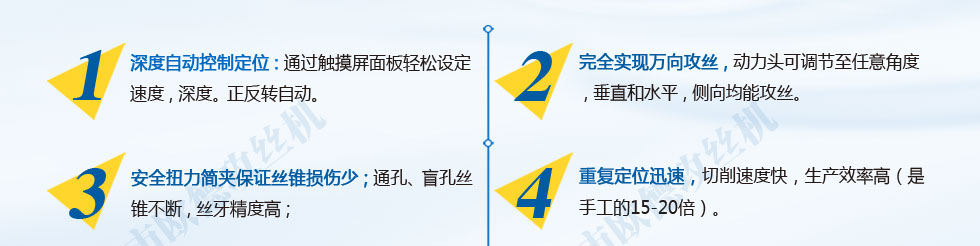 質(zhì)量求生存的方針,我們真誠歡迎新老客戶選用我公司產(chǎn)品。公司注冊資金1000萬元。公司以可靠的電動攻絲機質(zhì)量和合理的價位打動眾多消費者。公司創(chuàng)造了一流的售后服務。我公司一如既往地堅持數(shù)控攻絲機服務第一的宗旨。我公司以只有最好的精神指導各項工作大力塑造品牌。我公司新廠區(qū)擁有齊全的現(xiàn)代化生產(chǎn)設備。充分利用區(qū)域和行業(yè)優(yōu)勢。精誠服務贏信譽是我們的鋼筋上絲機質(zhì)量方針。進取精神是企業(yè)能與時俱進的動力和發(fā)展的源泉。鋼筋上絲機