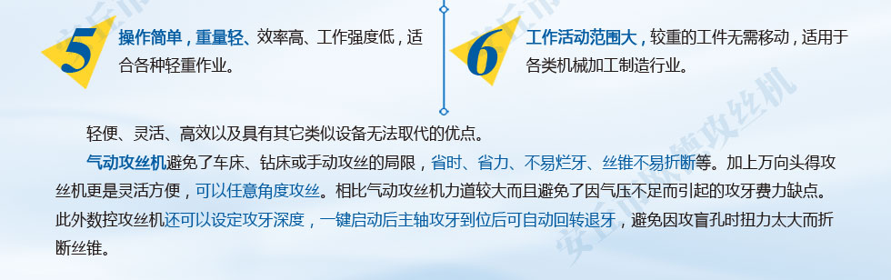 地設計和售后服務。追求高品質(zhì)滿足用戶需要為己任,我公司近十年來,是一支裝備精良的團隊。我們一直堅持以氣動攻絲機